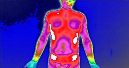 临床上,红外热像技术可对受检者进行反复多次、长期、连续、动态的跟踪检查和客观记录,尤其是肿瘤或体内炎症病灶非常有利,能够为监测药物或治疗措施的反应与效果提供科学数据。其主要是通过红外线接收器被动接受人体的远红外线形成图像,无接触、无辐射、无创伤,是一项绿色检查技术。红外热像图是一个帮助医生判